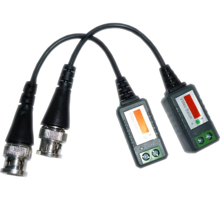 video balun PKVB100 I channel passive video transceiver; save 10-20% wire cost; Can support 600M(2000 Feet) video transmission; BNC male terminal can be connected to the camera or DVR; dose not require power supply.