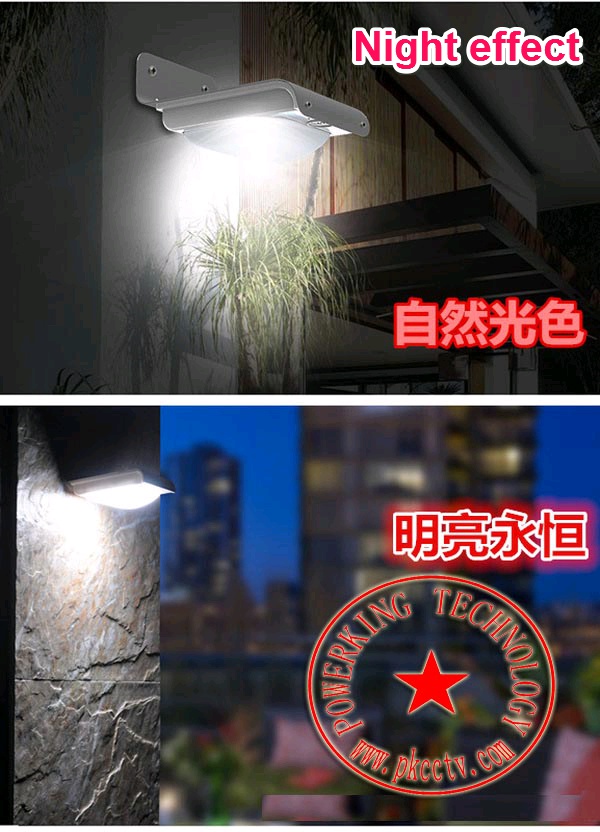 1. Solar panel: 5.5V / 0.55W 2. Lithium Battery: 3.7V / 800mA 3.LED: power 1W, 16 pcs 2835LED, color temperature 5500-6000K, Lumen 90LM. 4. Material: new environmentally protection fireproof level PC, T6061 aluminum anodized sandblasted 5. Sensor: pyroelectric sensor (also known as infrared sensor} 6. Operating mode: light control +motion detection, 7. charge time:> 8 hours (1000W / m2 illumination standard)
