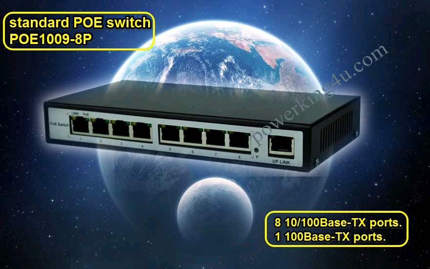 The POE1009-8P provides 9 10/100Base-TX ports. It provides 8 PoE Injector.