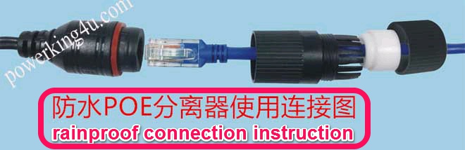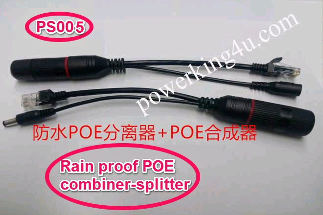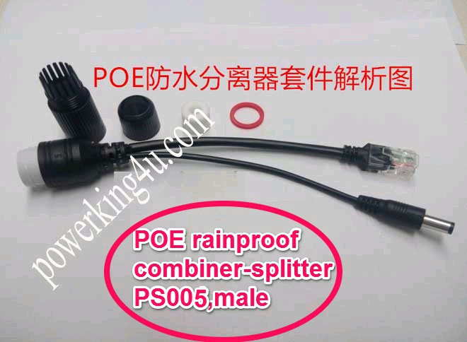 POE Waterproof rainproof combiner-splitter PS005 none standard Input voltage=output voltage; Support 3 ~ 57V DC voltage. 1 pair include one female and one male; 30 meters transmission,can trasmit data and Power! convenient to expand a home network, office network, with no limitation. This package can not convert voltage; This product is Simple POE:data transmission 1236, 45 + 78- power transmission;