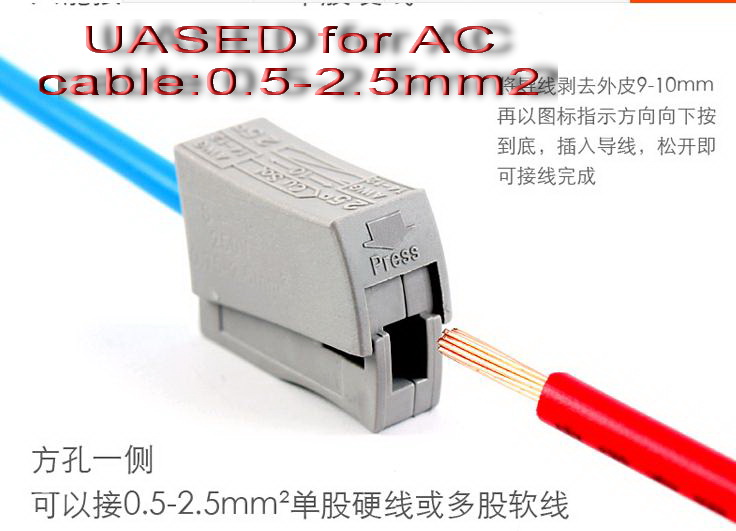 AC power connector AC connector 001,Household wiring connector, universal lighting connector, terminal blocks, wire connectors It is good solution for the connection of the AC power supports from 0.5-2.5mm² ; support max 24A AC current.